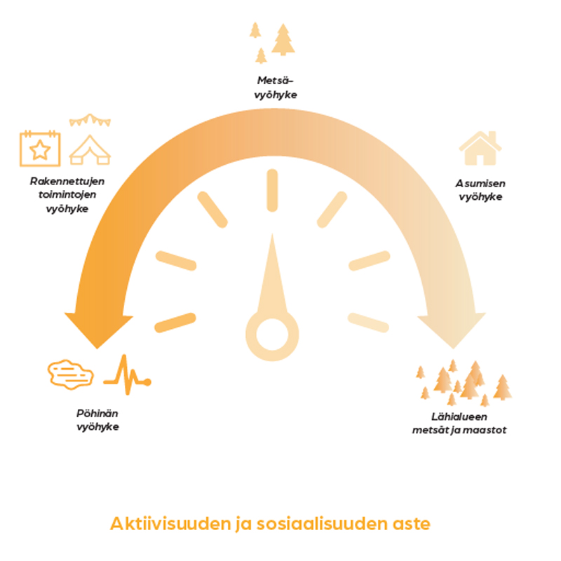 Zeniitti on jaettu neljään vyöhykkeeseen, joiden aktiivisuuden taso muuttuu louhokselta poispäin mennessä louhoksen ympäristön eli Pöhinän vyöhykkeen ollessa kaikista aktiivisin. Rakennettujen toimintojen vyöhyke sisältää tapahtuma-areenan ja kesäteatterin lisäksi matkailumajoituksen. Vyöhykettä reunustaa viherkehä, jonka toiselle puolelle asumisen vyöhykkeelle rakentuu uutta pientalo- ja rivitaloasumista.