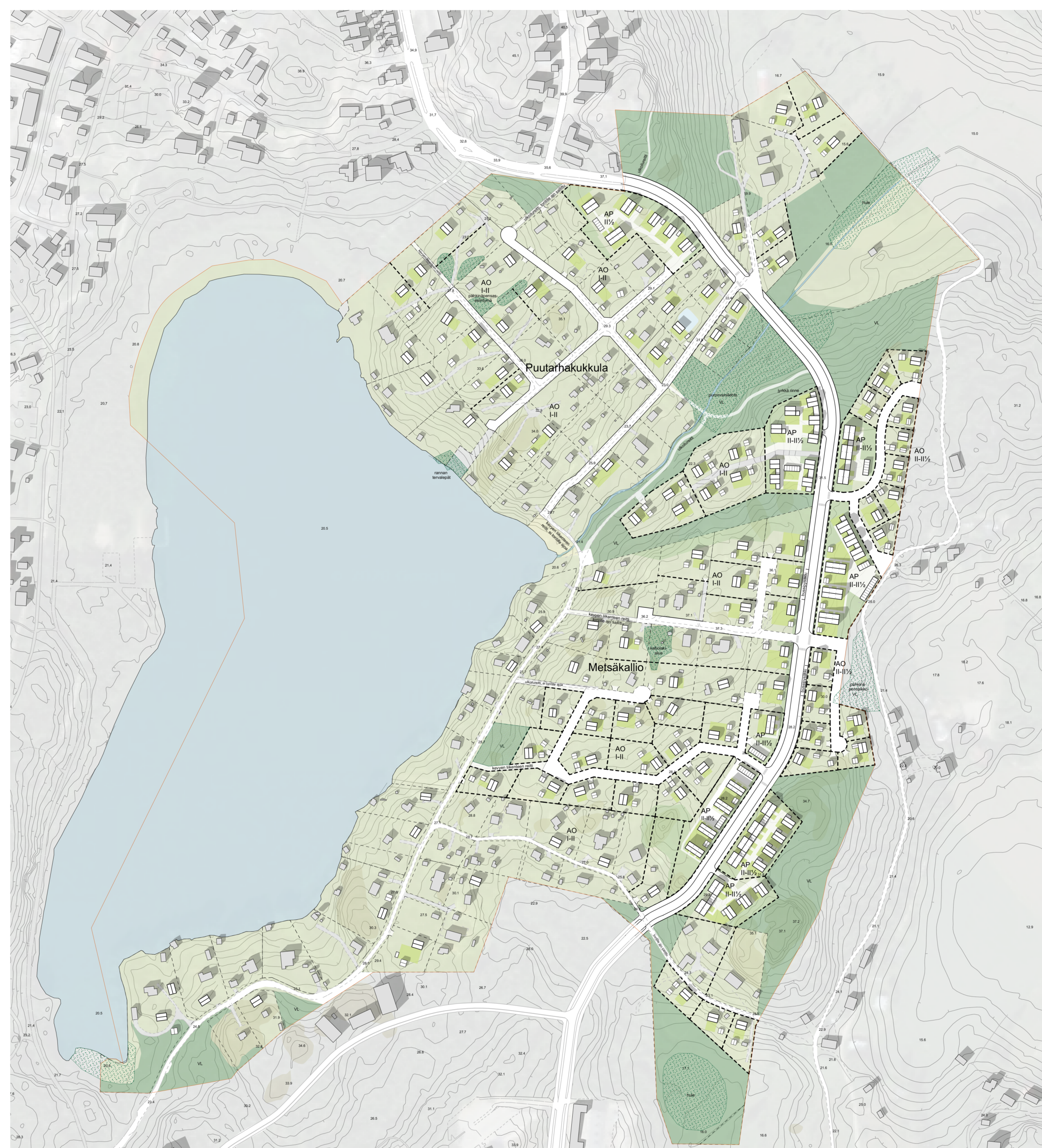 Tekemämme tontinkäyttösuunnitelma on tasapainoinen kokonaisuus alueen pienipiirteisen maiseman säilyttämisen ja nykypäivän kehittyvän asuinalueen vaatimusten välillä. Keskeisessä osassa suunnittelua olikin nykyisten asumisen tarpeiden tulkitseminen niiden suunnitteluratkaisujen kautta, jotka vahvistavat alueen omintakeisia piirteitä. Suunnitelmassa uudisrakentamisen määrä ja sijoittelu pihapiirimäisiksi kokonaisuuksiksi jatkaa 1930–1960 -lukujen loma-asumisen kylämäistä kaupunkirakennetta. Alueen vaihtelevat maastonkorkeudet ja metsäinen yleisilme ohjaavat rakennusten hienovaraiseen, ympäristöä kunnioittavaan sijoitteluun. Asuinalueen identiteetin kannalta uudisrakentamisen lisäksi vähintään yhtä merkittävässä osassa ovat vanha rakennuskanta ja sen huolellinen korjaaminen.